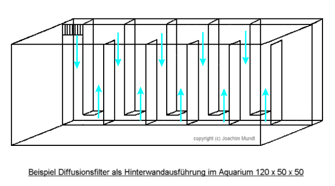 Strömung im Becken richtet. Der Diffusionsfilter ist wegen seines Diffusionsantriebes